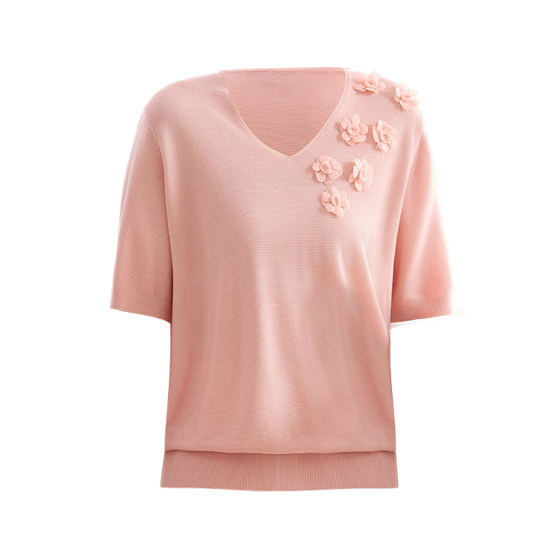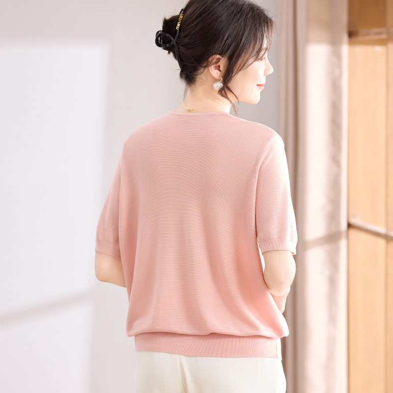 喜卉妈妈夏装洋气减龄短袖T恤上衣中老年女装夏季薄款洋气针织衫