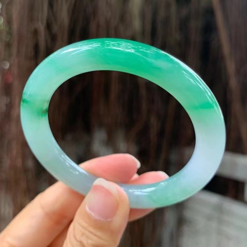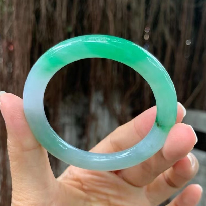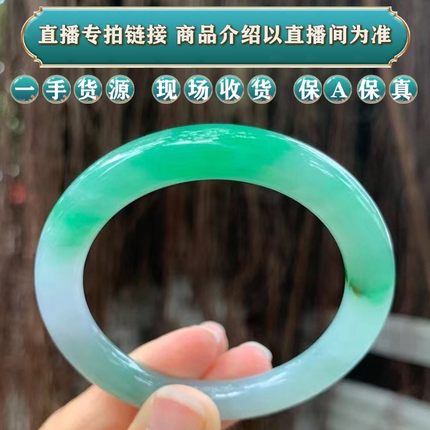 老东家翡翠海外购缅甸天然翡翠白底青翡翠手镯直播间专拍链接