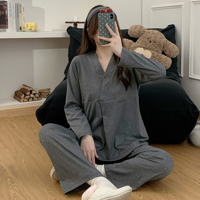 a类母婴级月子服带胸垫春秋9月份纯棉全棉吸汗大码孕妇睡衣哺乳10