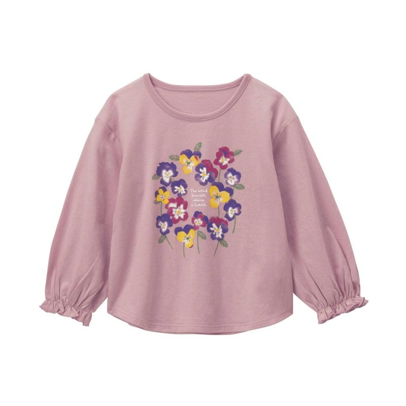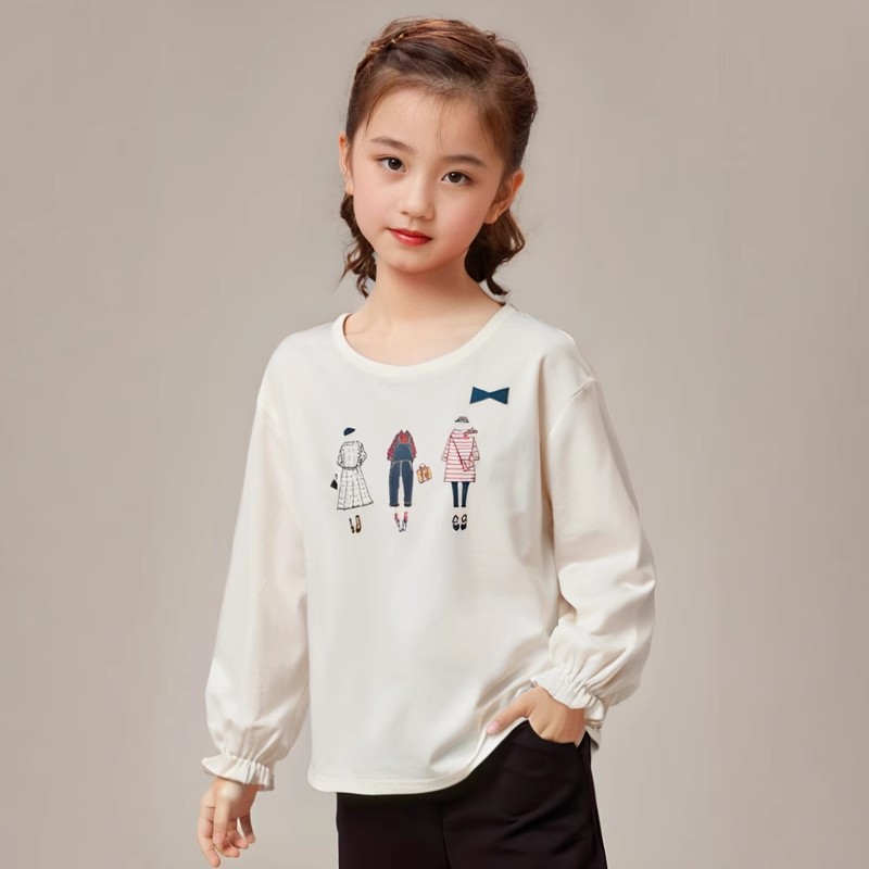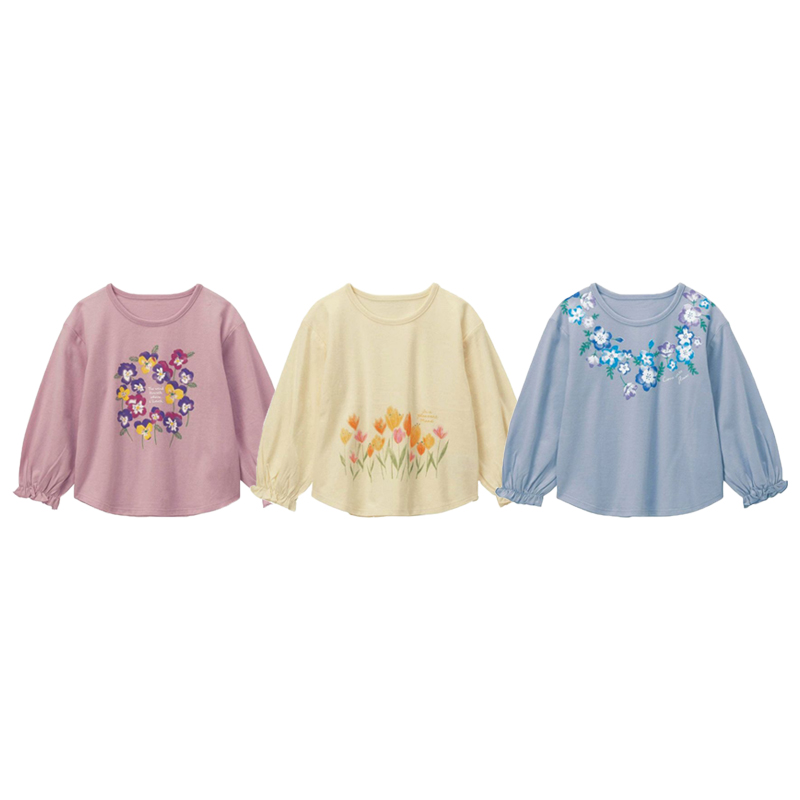 日系千家原单春秋女童印花长袖 纯棉针织甜美花朵袖泡泡袖长袖T恤