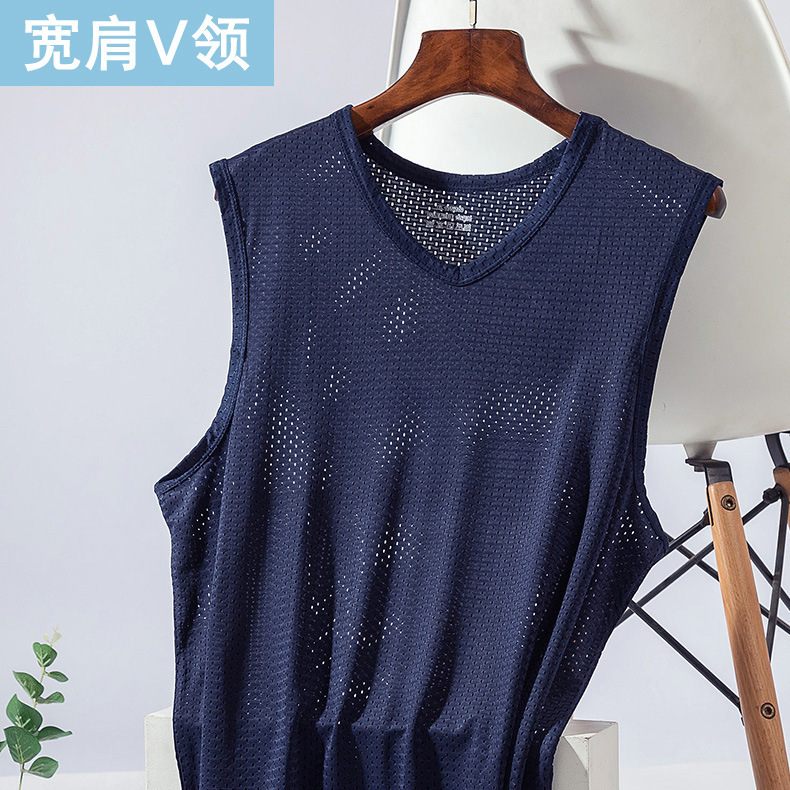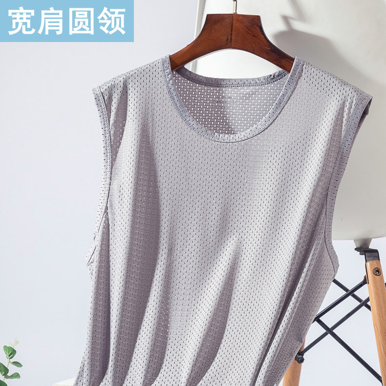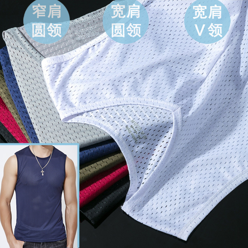 夏季冰丝网眼背心男士运动健身速干镂空汗衫宽肩坎肩袖恤