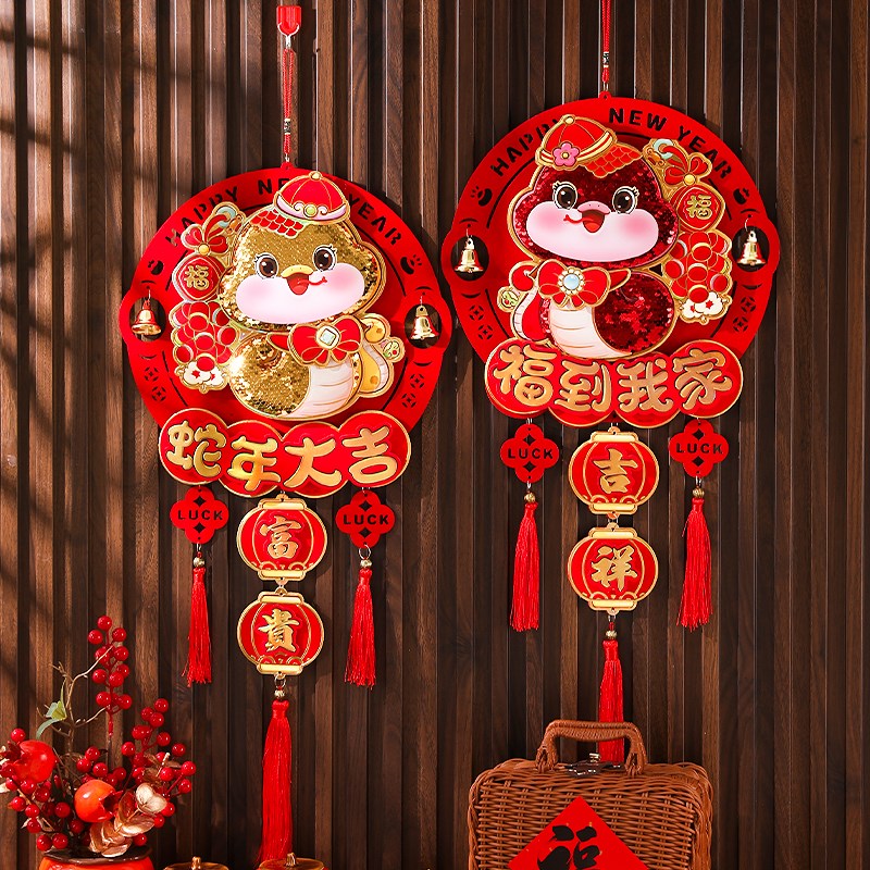 2025蛇年毛毡挂件新年生肖国潮挂饰春节过年客厅玄关大门装饰用品