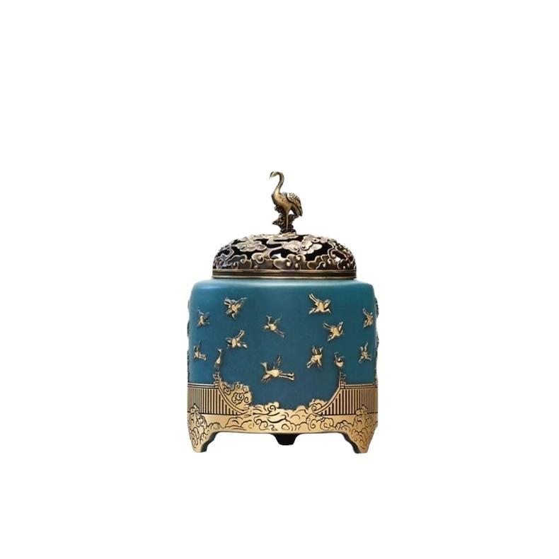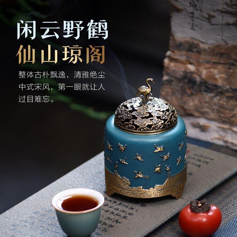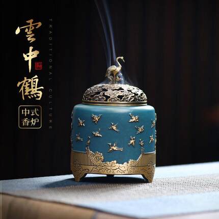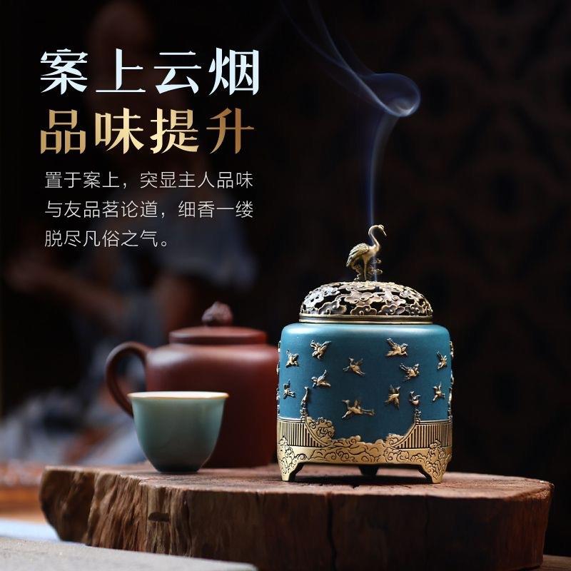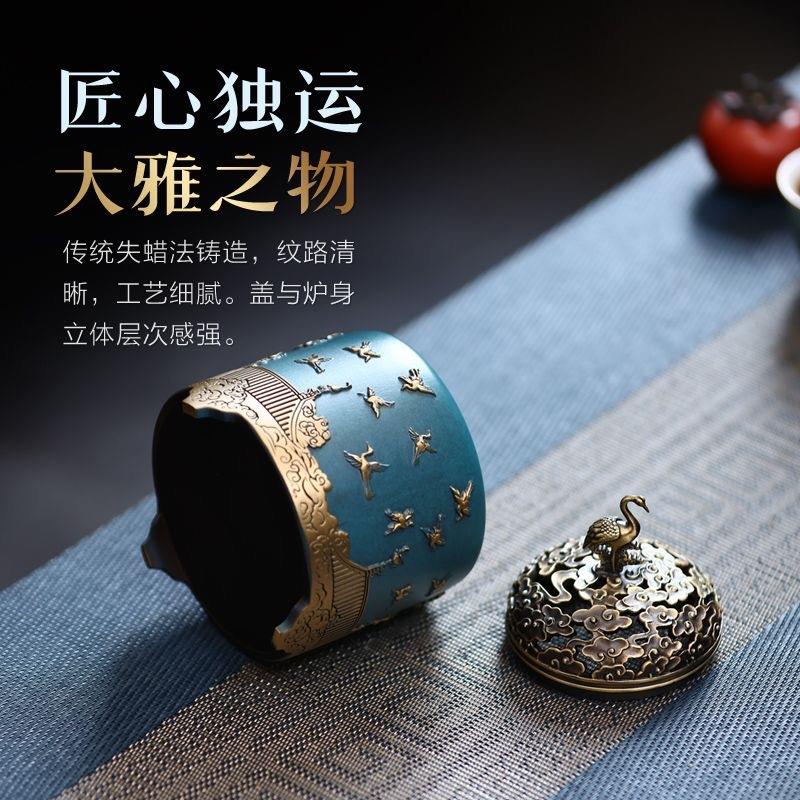 铜香炉黄铜瑞鹤香薰炉家用檀香熏香室内沉香盘香炉创意家居黄铜摆