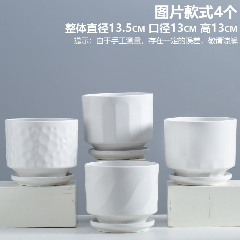 北欧风简约白色花盆陶瓷大号特大号带托盘绿萝兰花多肉植物大花盆