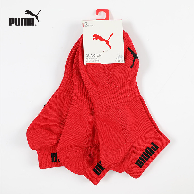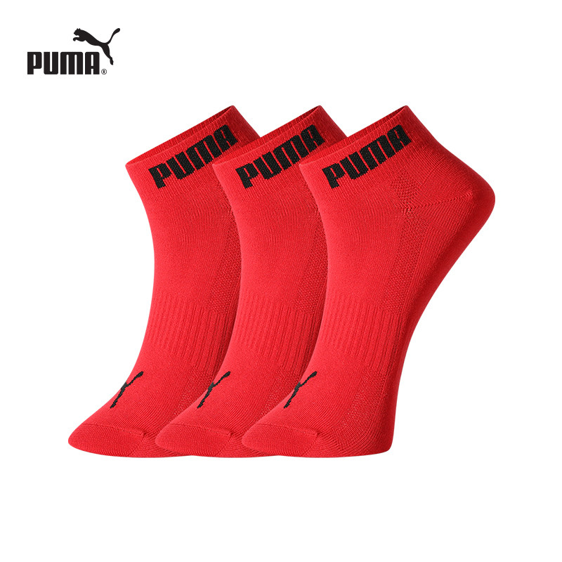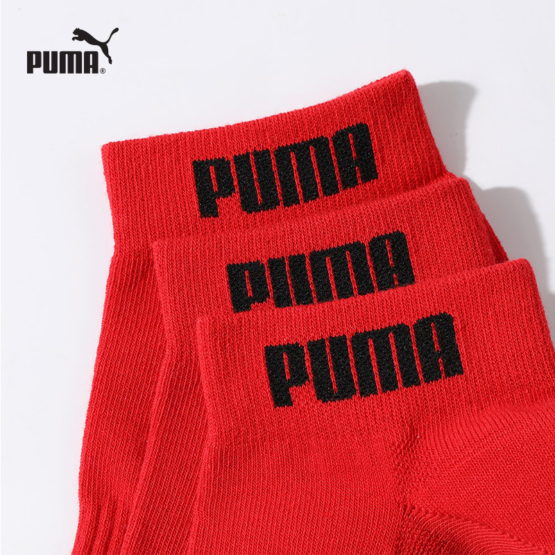 PUMA彪马袜子男女同款透气红色本命年结婚短筒袜时尚潮流棉袜3双