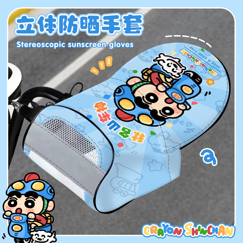 蜡笔小新电动车防晒手套夏季挡风防水电瓶摩托车遮阳罩手把套通用