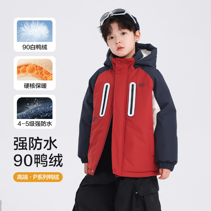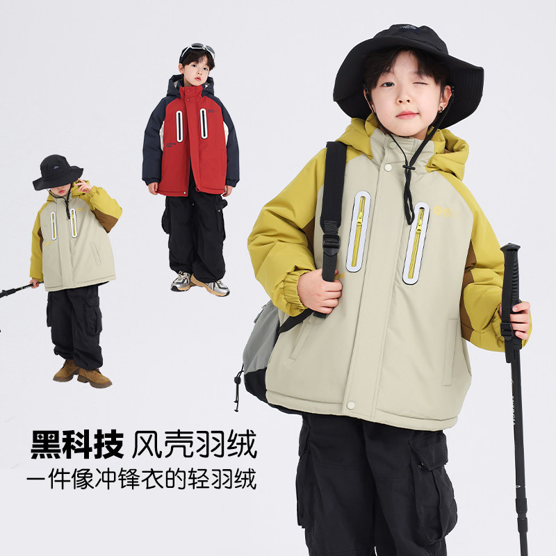 男童冬装撞色户外冲锋衣羽绒服2025新款儿童男孩冬季防风加厚外套