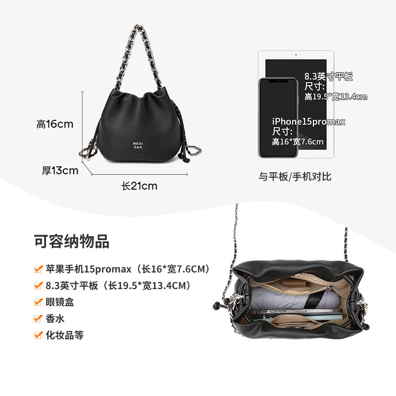 稻草人女包2025新款时尚水桶包抽绳云朵包网红休闲单肩斜挎包正品