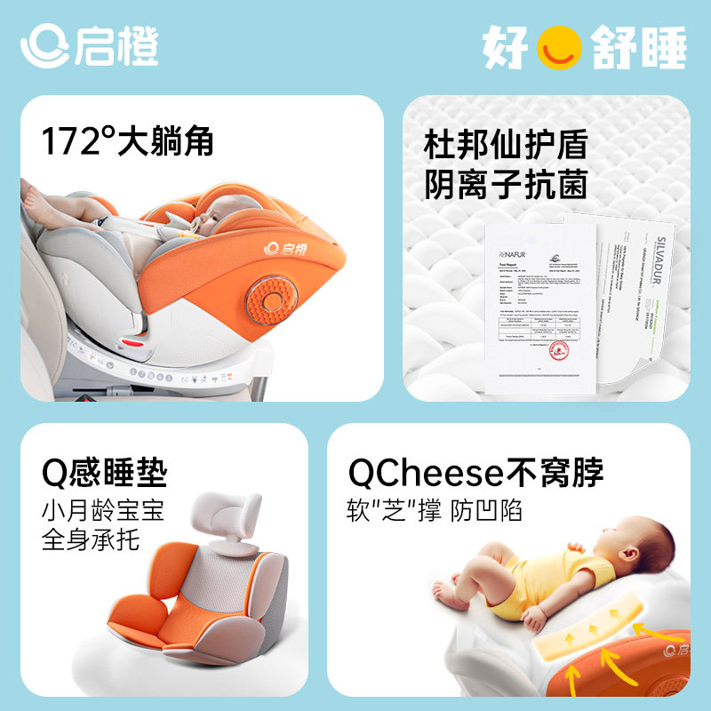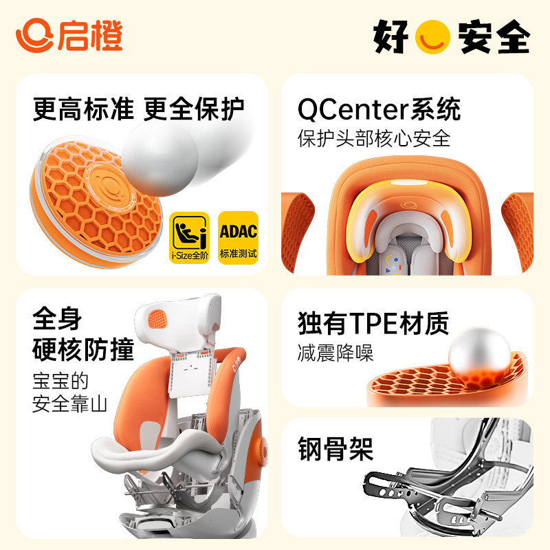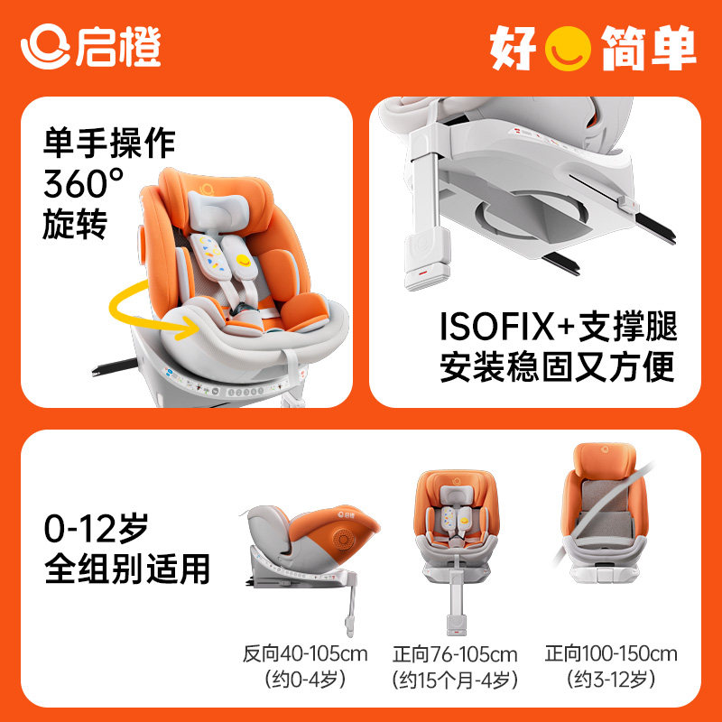 启橙壳壳椅pro智能婴儿童安全座椅新生宝宝0-12岁车载360旋转通风