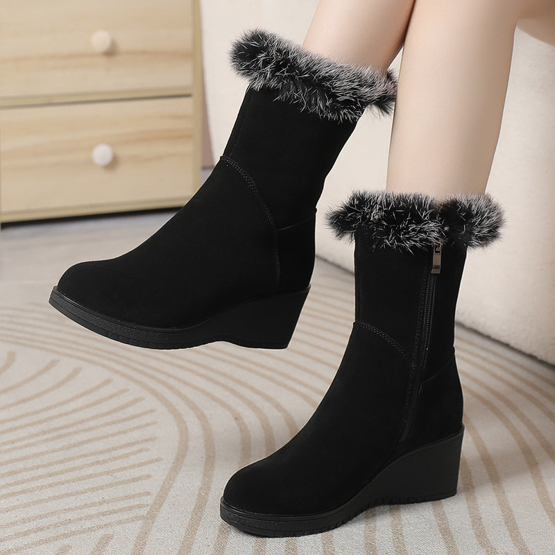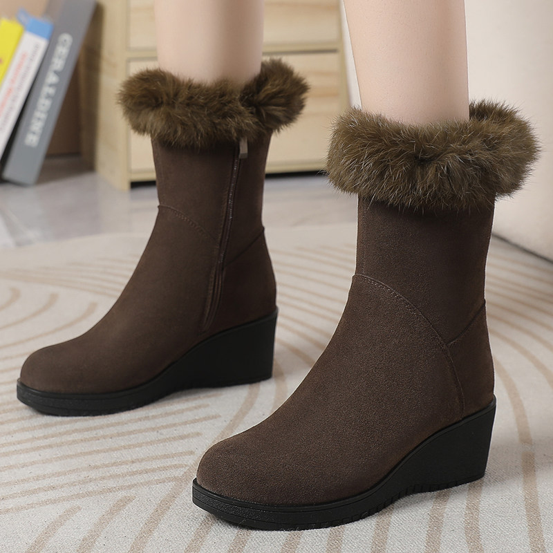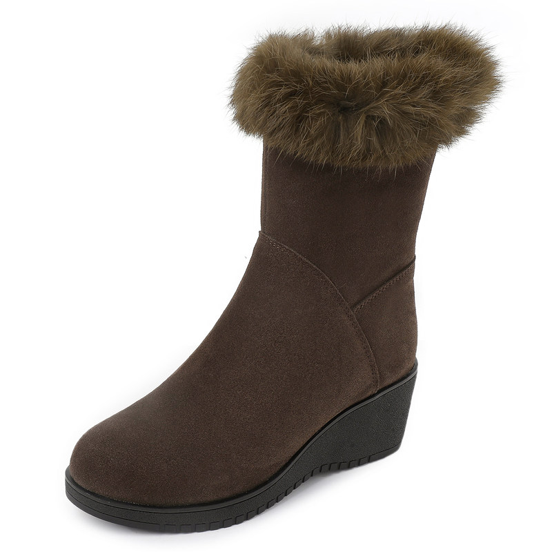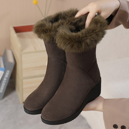 真皮厚底雪地靴冬季百搭保暖妈妈鞋大码加绒中筒女靴兔毛加厚棉鞋