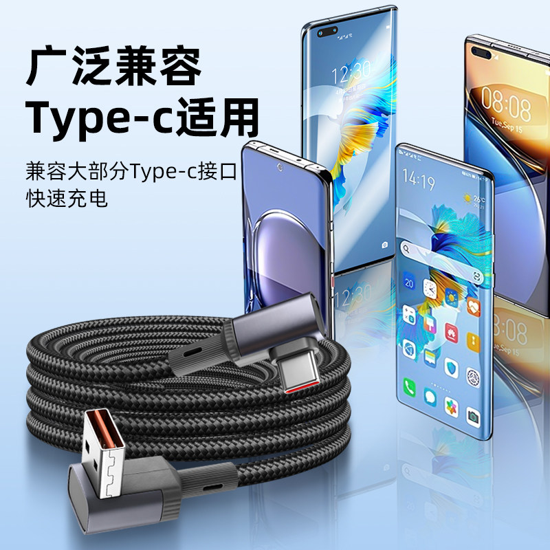 15/25/50厘米typec数据线弯头适用苹果16华为荣耀6a超级快充短线tpc充电宝安卓手机充电器线短加长1/1.5/3/5m