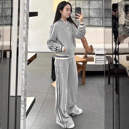 金丝绒欧货潮牌休闲运动套装女时尚减龄显瘦外套上衣阔腿裤两件套