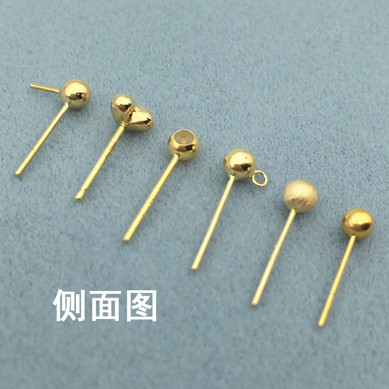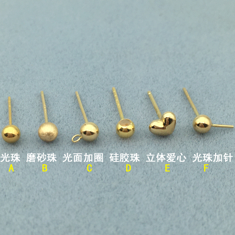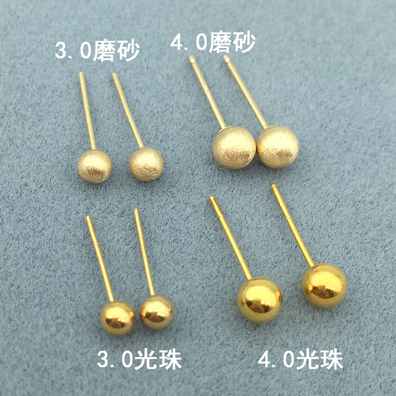 18K金豆豆耳钉diy配件波珠黄金珠带针小圆球耳饰彩金玫瑰金耳环女