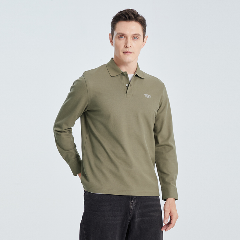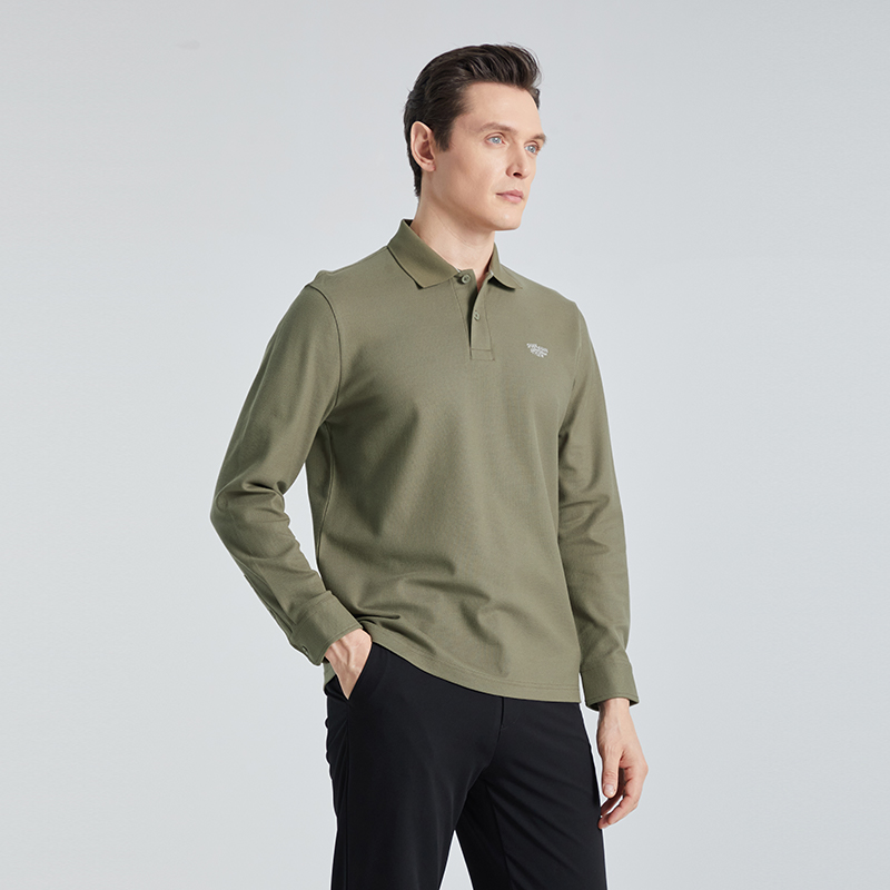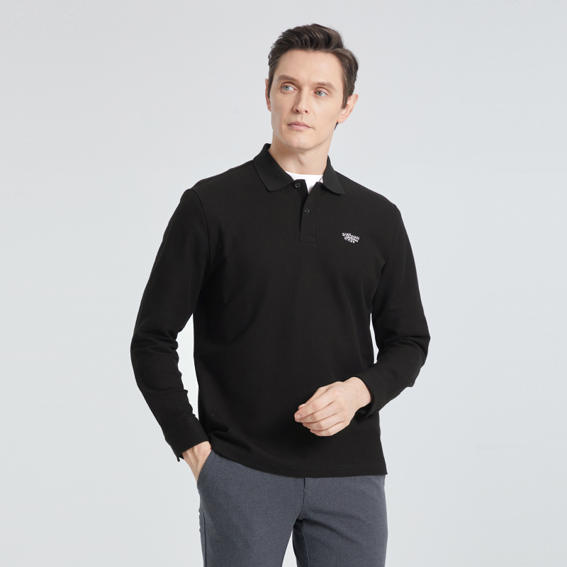 SHANSHAN杉杉官方男士纯棉长袖t恤翻领2025秋季新款上衣polo衫男
