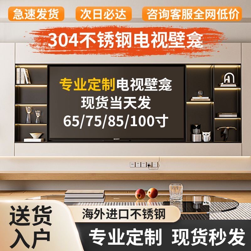 304不锈钢电视壁龛嵌入式65/75寸金属电视柜壁龛背景墙镂空内嵌框