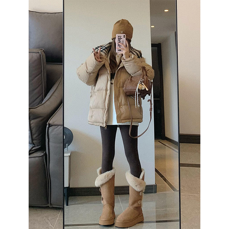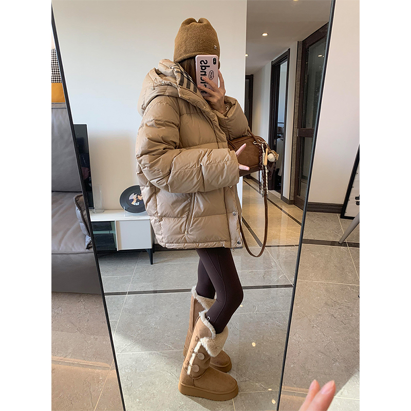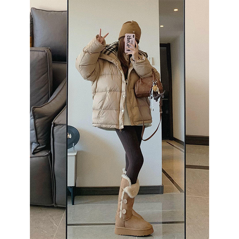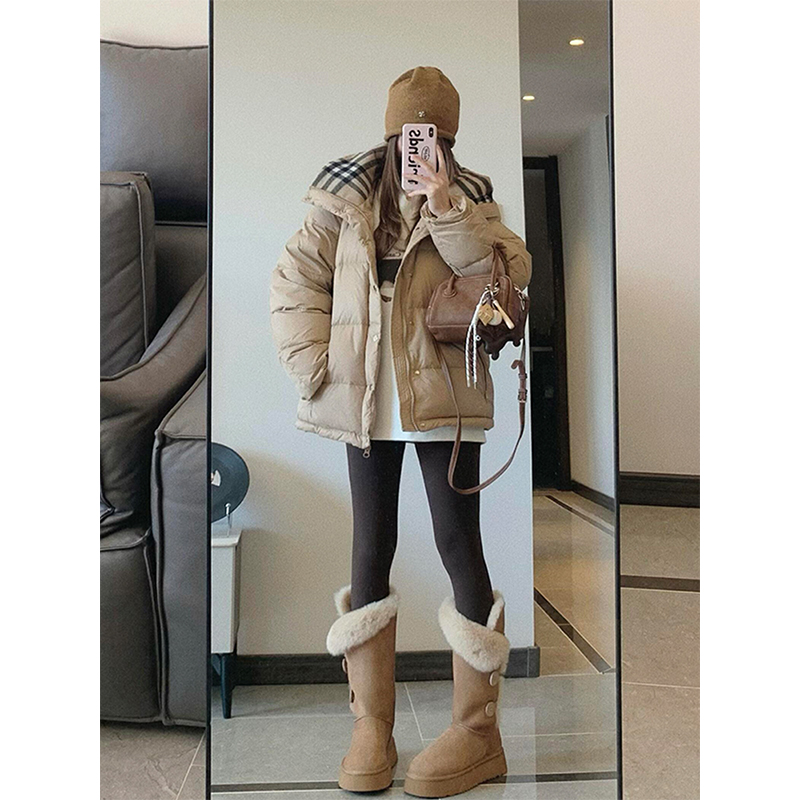 胖mm大码女装格纹拼接设计感羽绒棉服女韩系加厚保暖面包服外套女