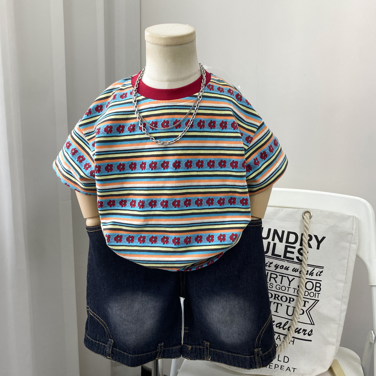 儿童夏装男童短袖t恤2025新款复古风男孩体恤上衣夏款透气中童装