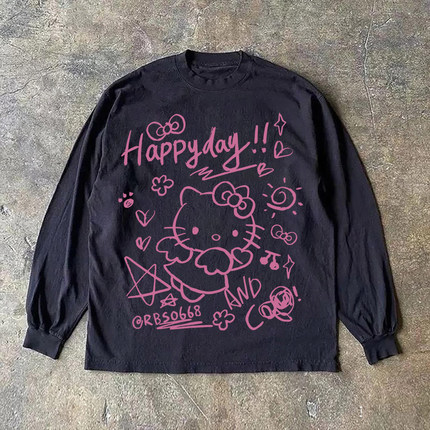 海外订单尾货~撤回外贸港风潮牌纯棉圆领长袖T恤男女百搭ins新款