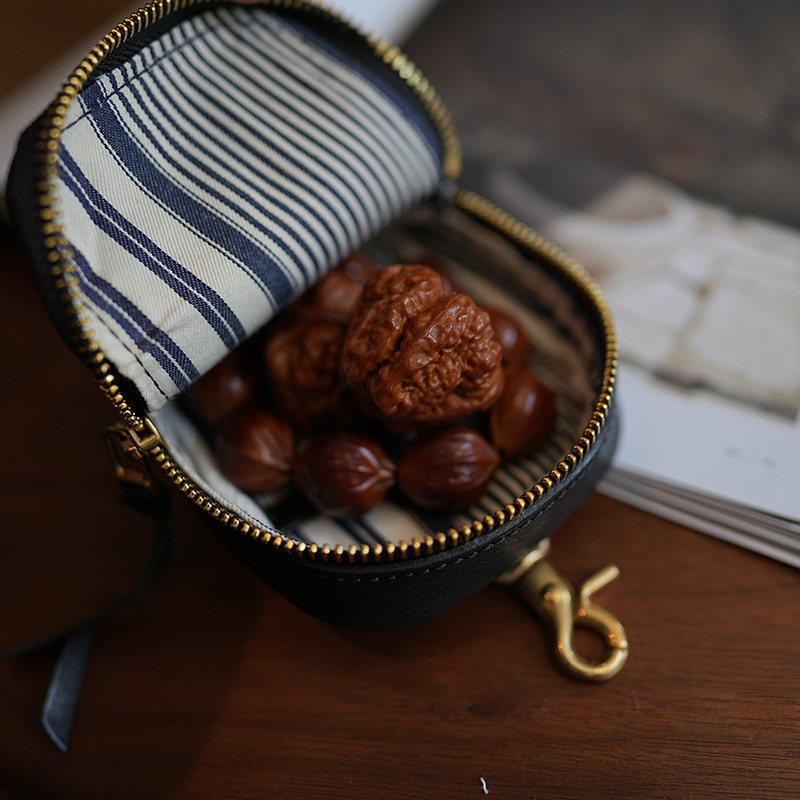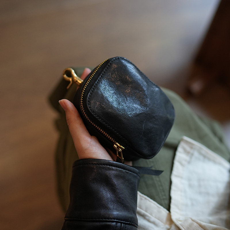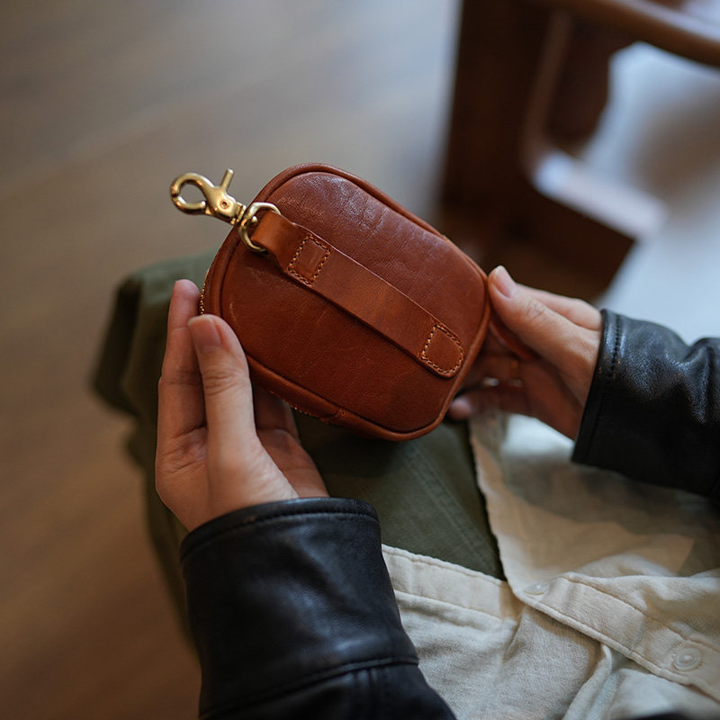 鹿小姐植鞣牛皮小众复古零钱包真皮耳机文玩收纳小挂包挂饰腰包