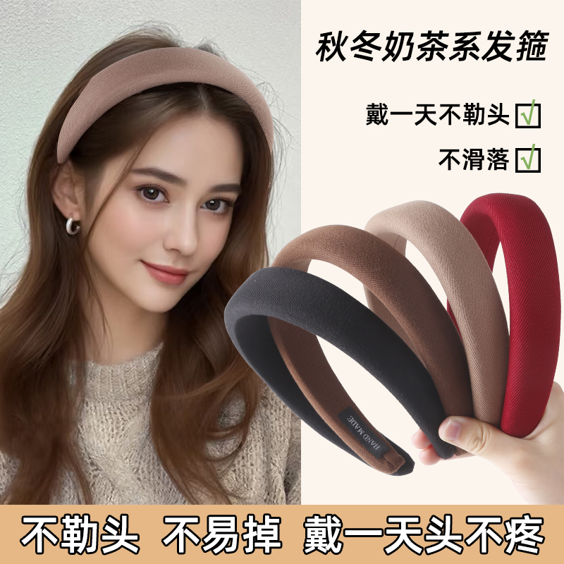 春秋新款海绵宽边发箍复古高颅顶网红发卡头饰洗脸头箍不勒头褶皱