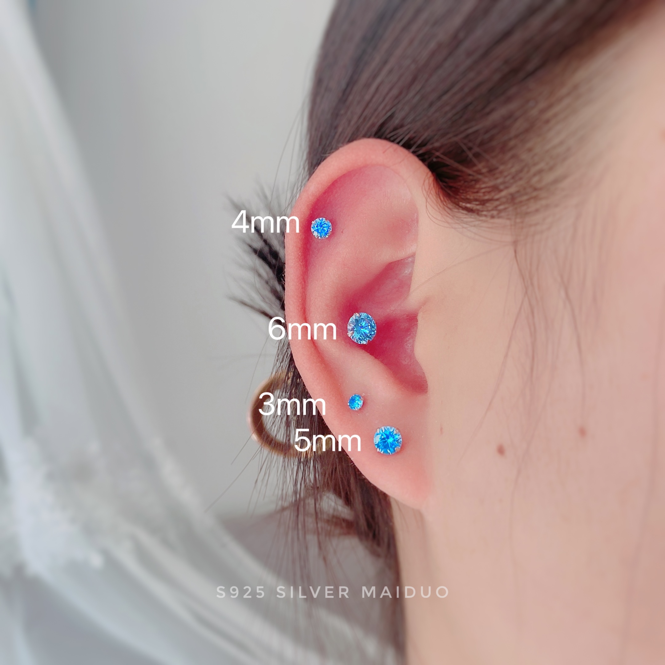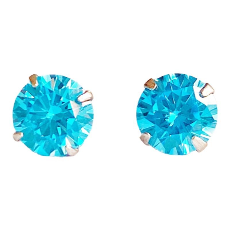 s925纯银耳钉女托帕蓝色仙女天空蓝海闪亮镶嵌显白精致高级褪色