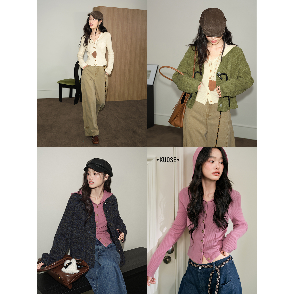阔色毛衣针织衫连帽衫女2025秋季新款内搭打底衫修身显瘦上衣春