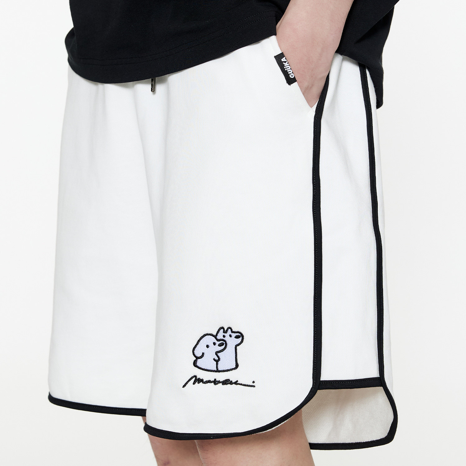 GUUKA&matsui联名小狗刺绣白色短裤男夏季中裤重磅纯棉运动五分裤