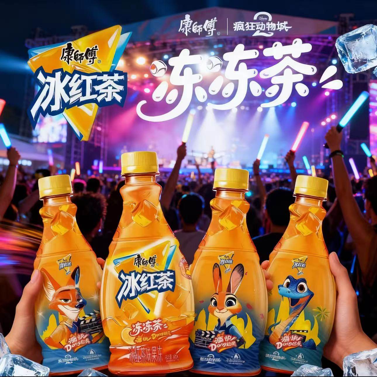 【整箱12瓶】康师傅新品冰红茶冻冻茶迪士尼疯狂动物成联名果冻饮