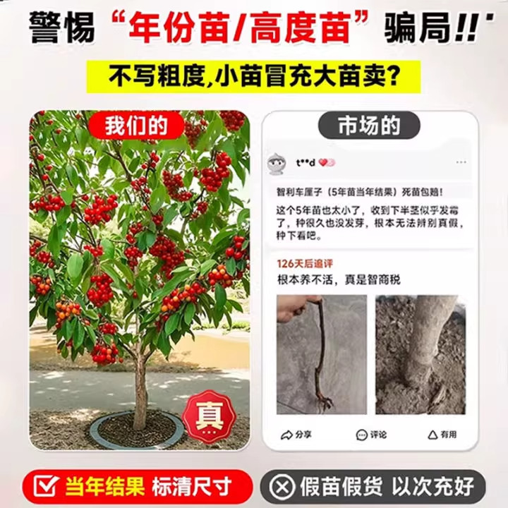 正宗车厘子树苗盆栽矮化黑珍珠特大樱桃树苗果树南方北方种植果树
