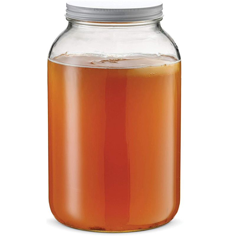 跨境亚马逊现货1加仑大号玻璃瓶储物瓶康普茶太阳茶瓶子配塑料盖