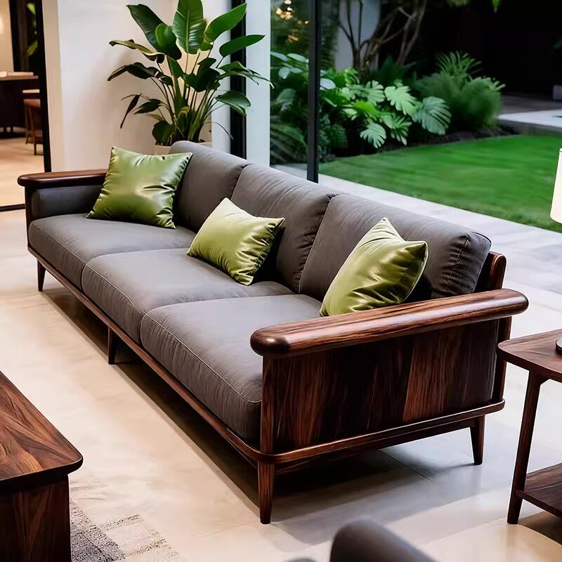 新中式实木沙发2026新款黑胡桃木高端禅意客厅现代简约布艺三人位