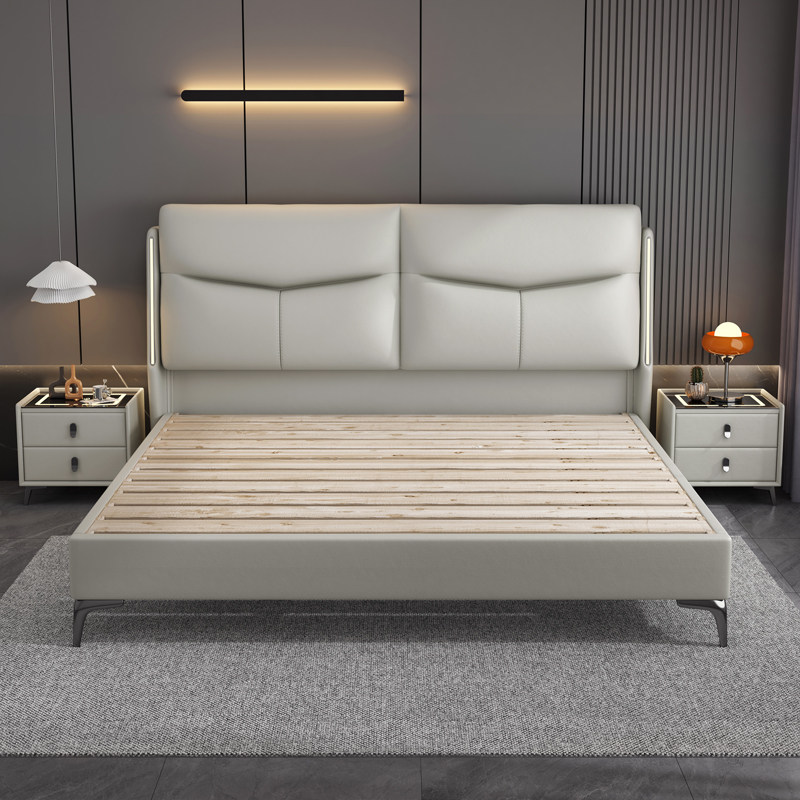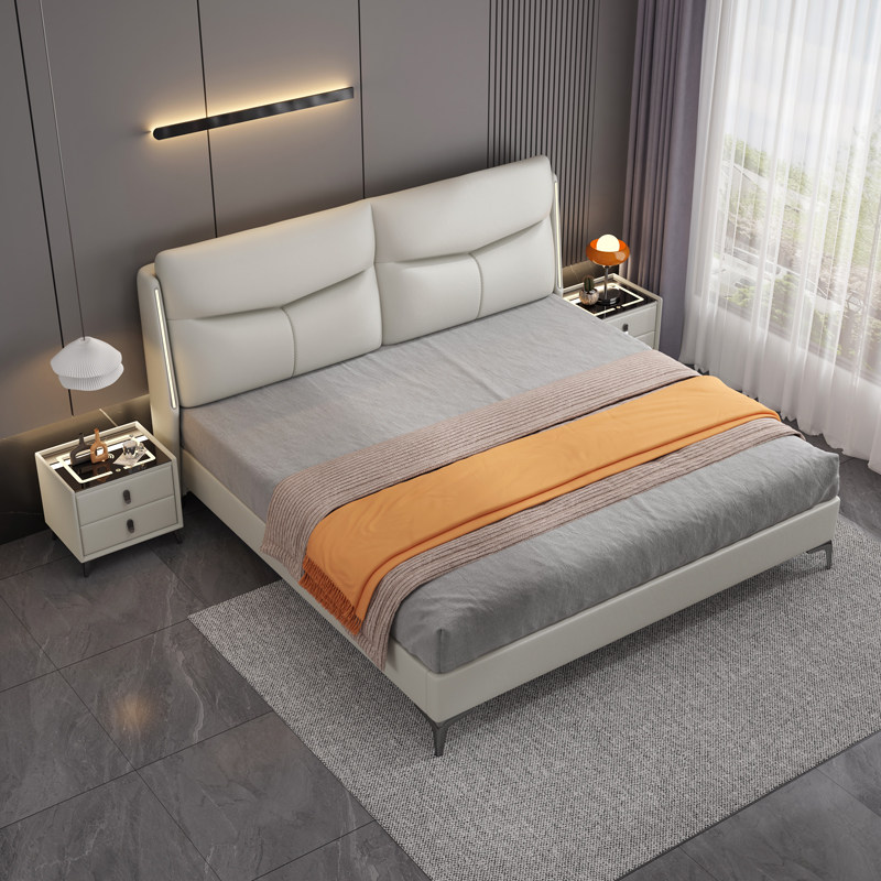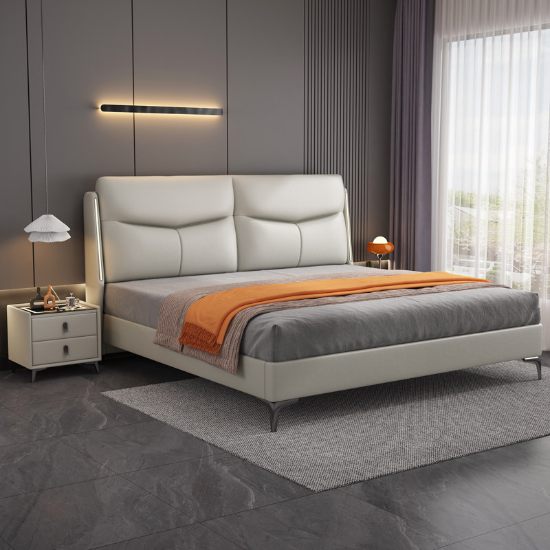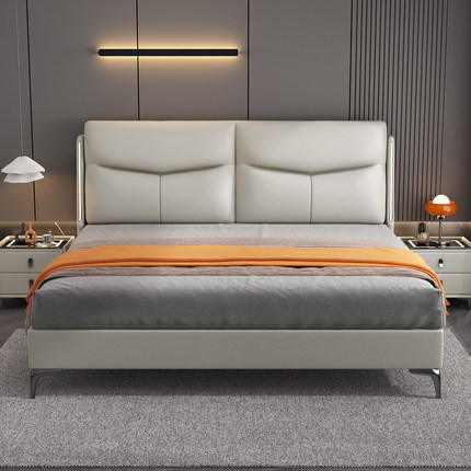 源氏木语头层真皮床双人床1.8米主卧床婚床软包轻奢皮床现代床小