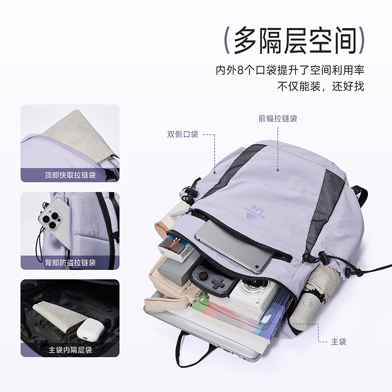 Lee2025新款通勤双肩包户外出行旅行包百搭大容量背包轻便登山包