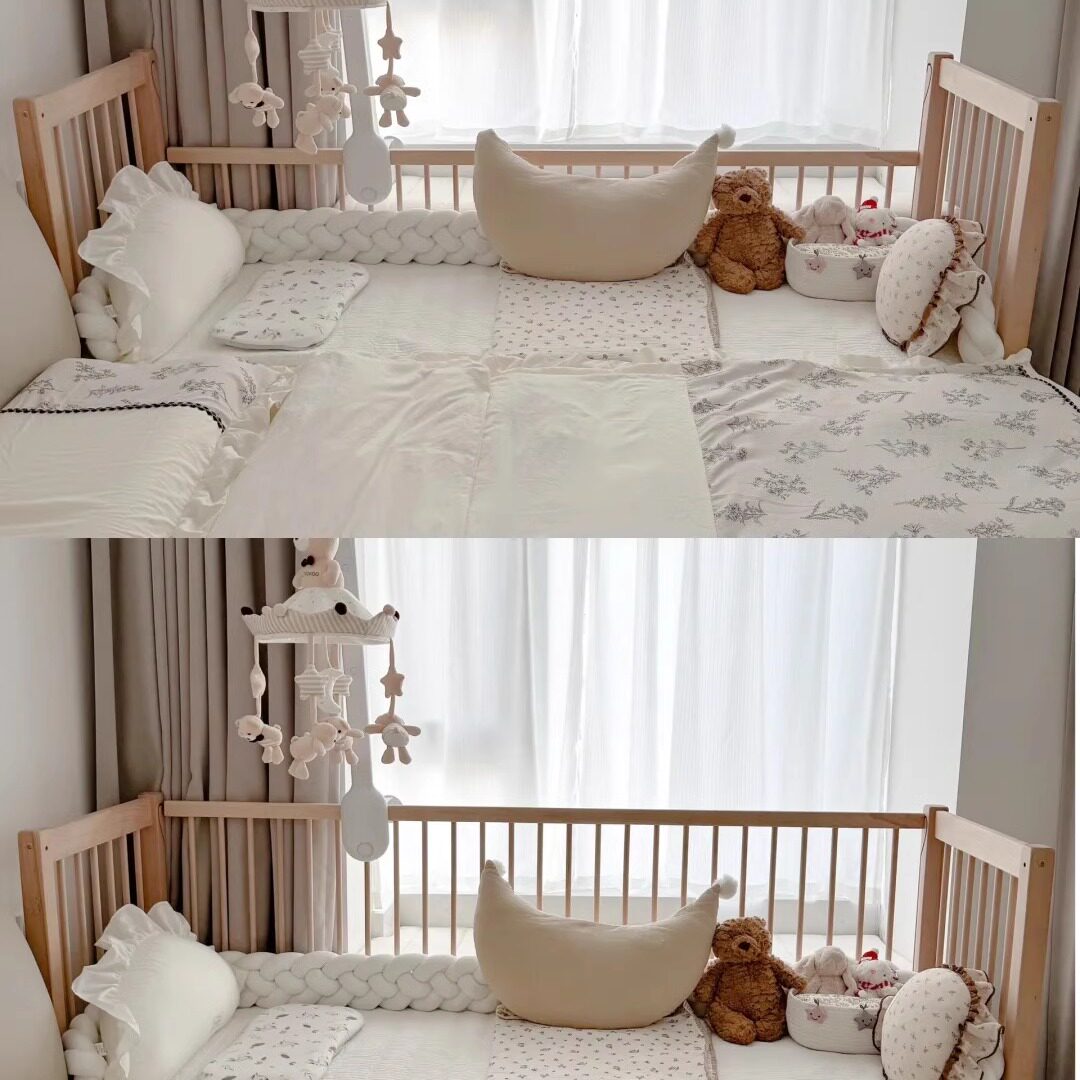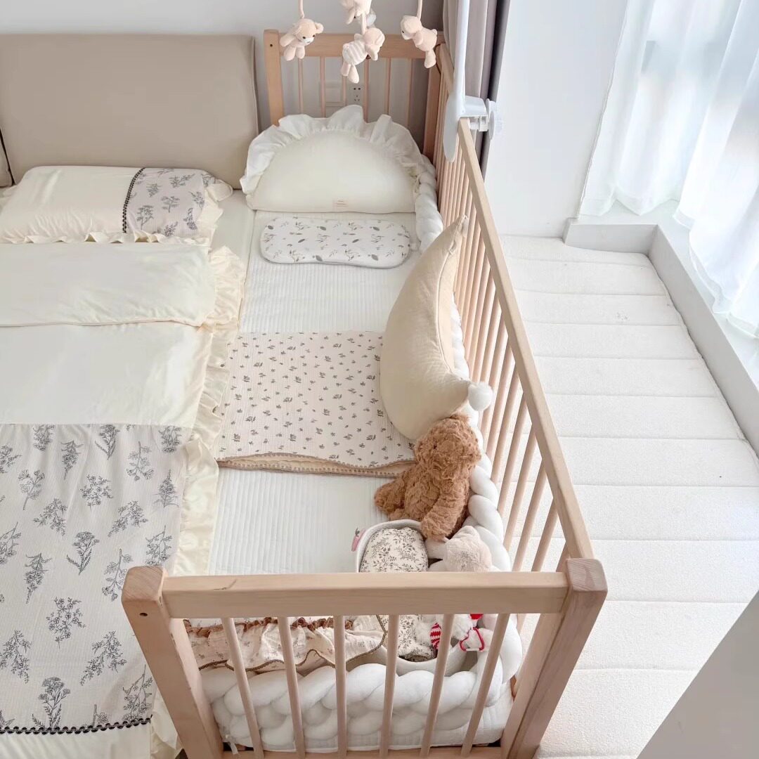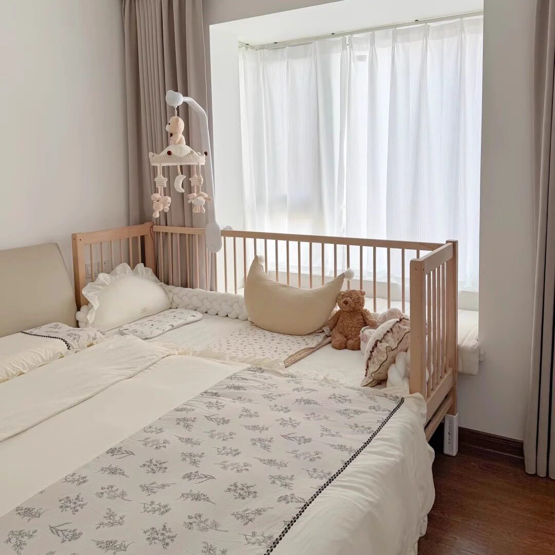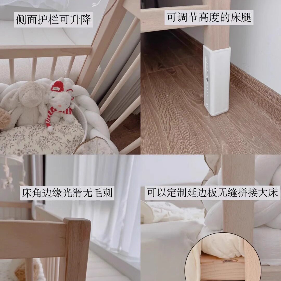 婴儿拼接床高低可调儿童床实木带护栏加宽床宝宝床边床榉木拼接床