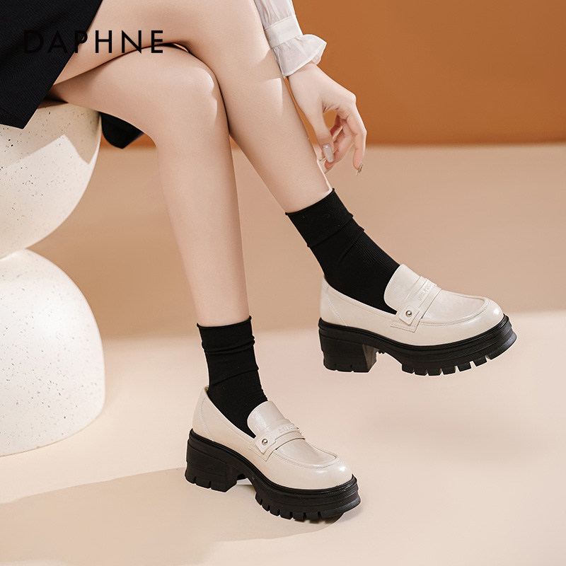 达芙妮厚底乐福鞋女2024春新款英伦风复古小皮鞋白色高跟增高单鞋