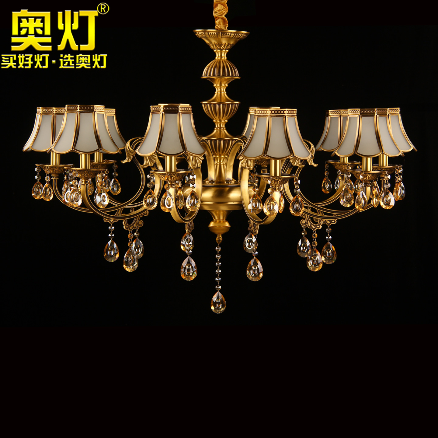 奥灯欧式全铜水晶吊灯别墅客厅餐厅卧室单层10头古典大气灯具8961