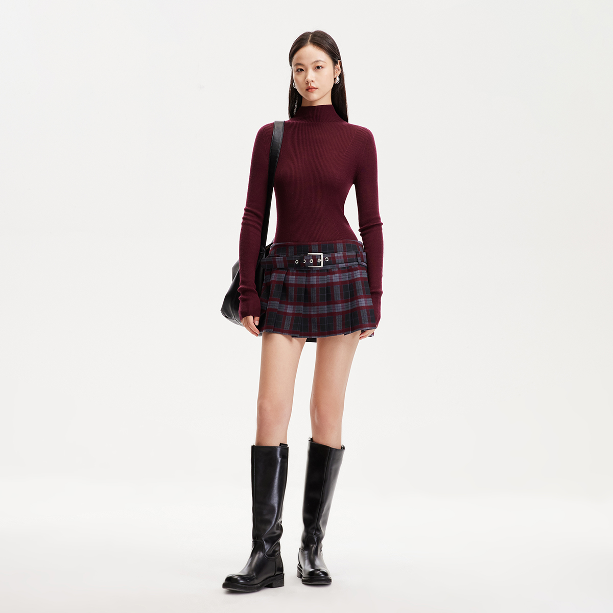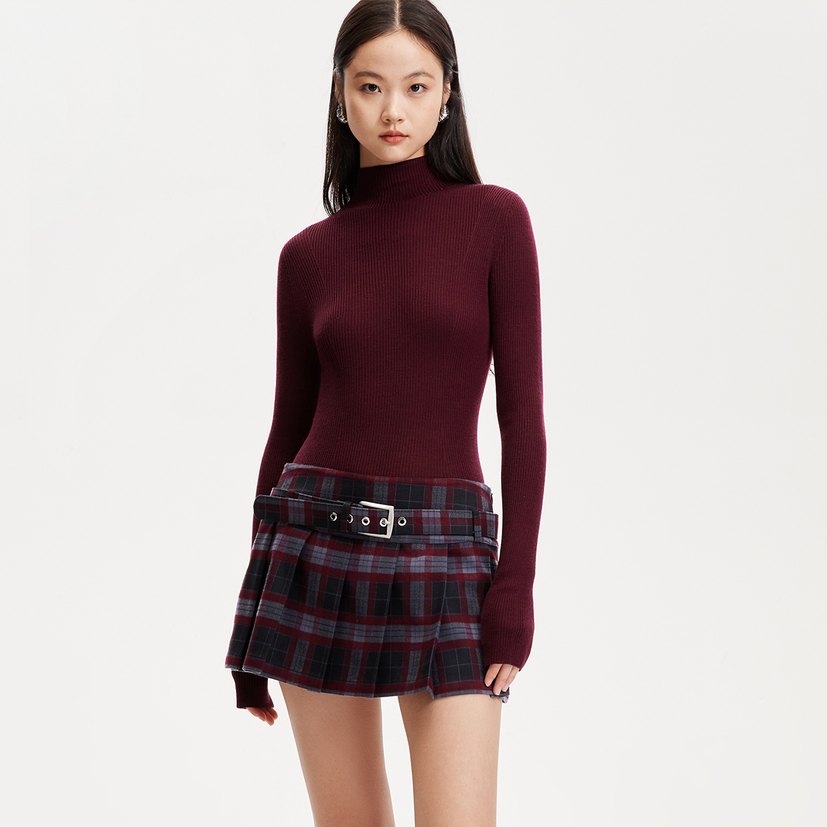 Vero Moda短裙25夏季新款低腰迷你裙格纹腰带半身短裙325116002
