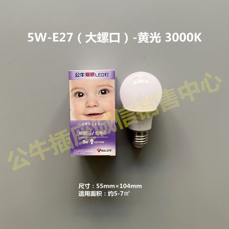 公牛led灯泡家用E27螺口光源超高亮节能螺旋照明球泡3w5w7w黄白光