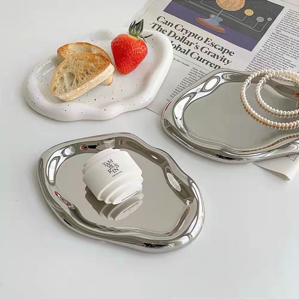 北欧创意轻奢陶瓷银色收纳首饰盘装饰品托盘果盘早餐盘餐桌甜品盘