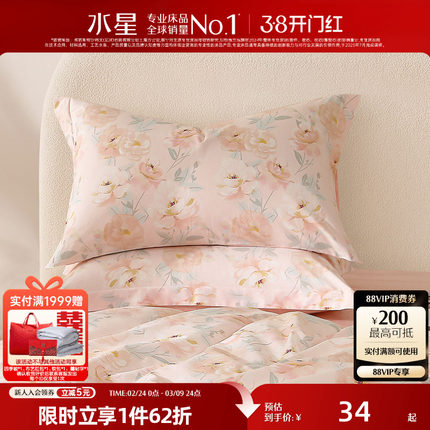 水星家纺全棉对枕套100%纯棉花卉印花枕芯套一对装家用宿舍床品