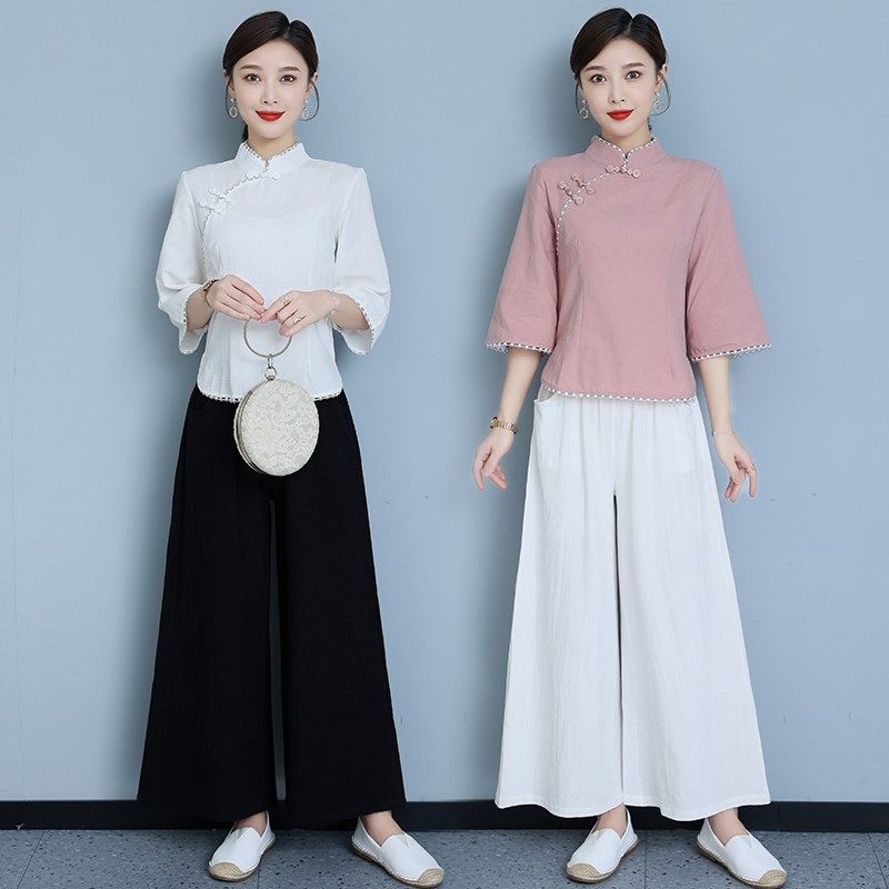 民国风复古女装中式上衣中国风唐装改良汉服女套装茶艺采耳工作服