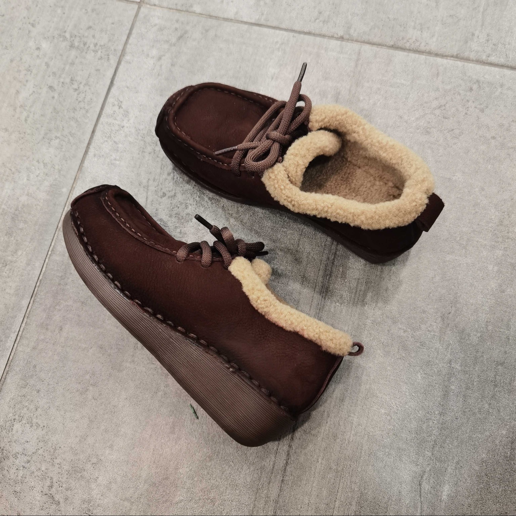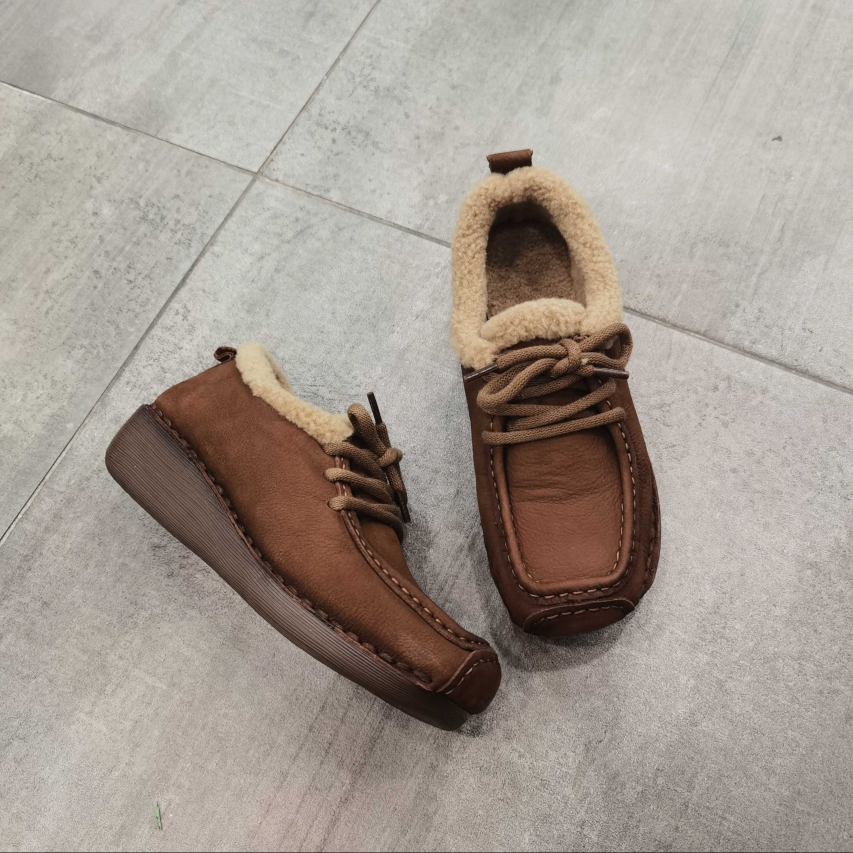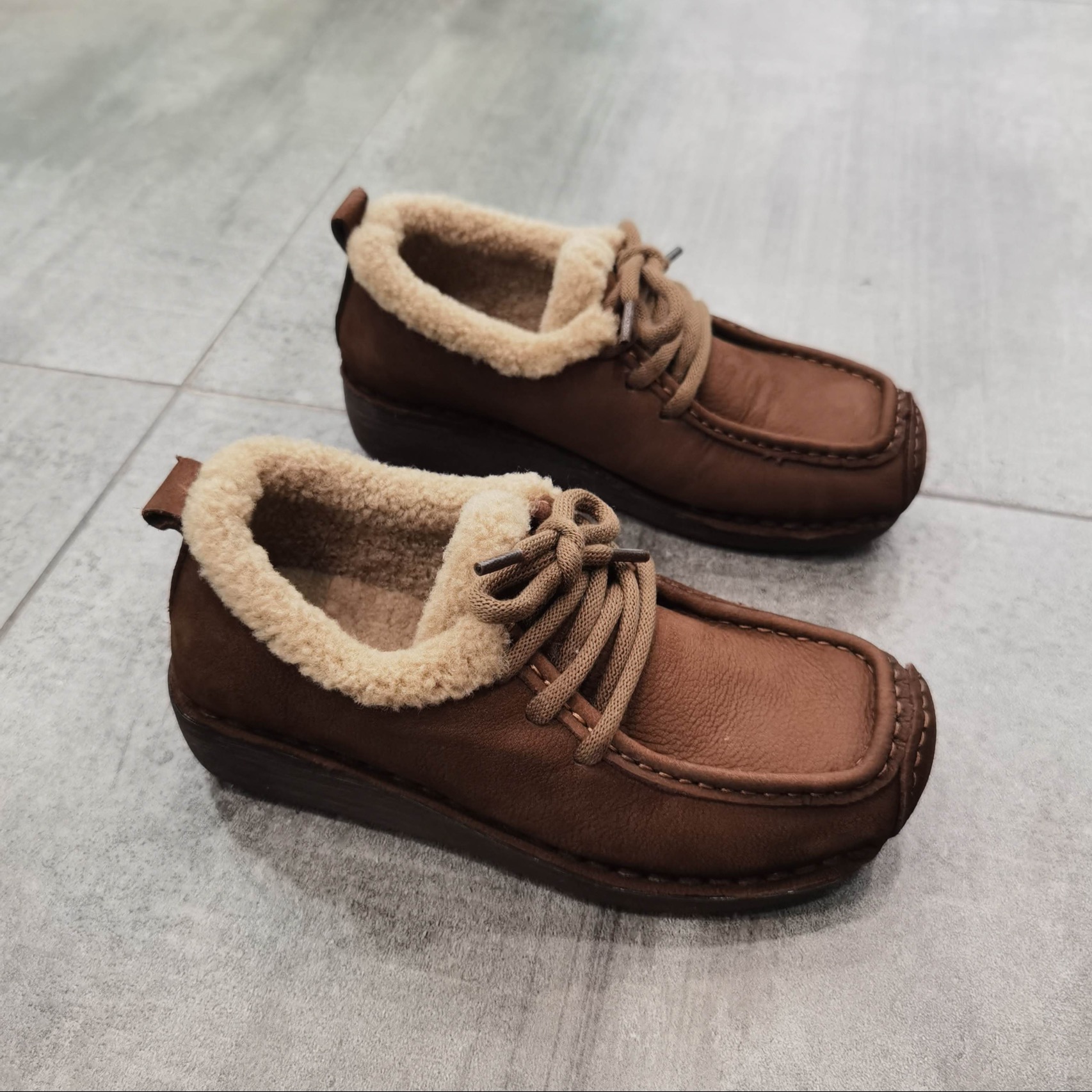 都市星期天专柜正品2025冬季新款牛皮女鞋休闲鞋绒里鞋厚底乐福鞋
