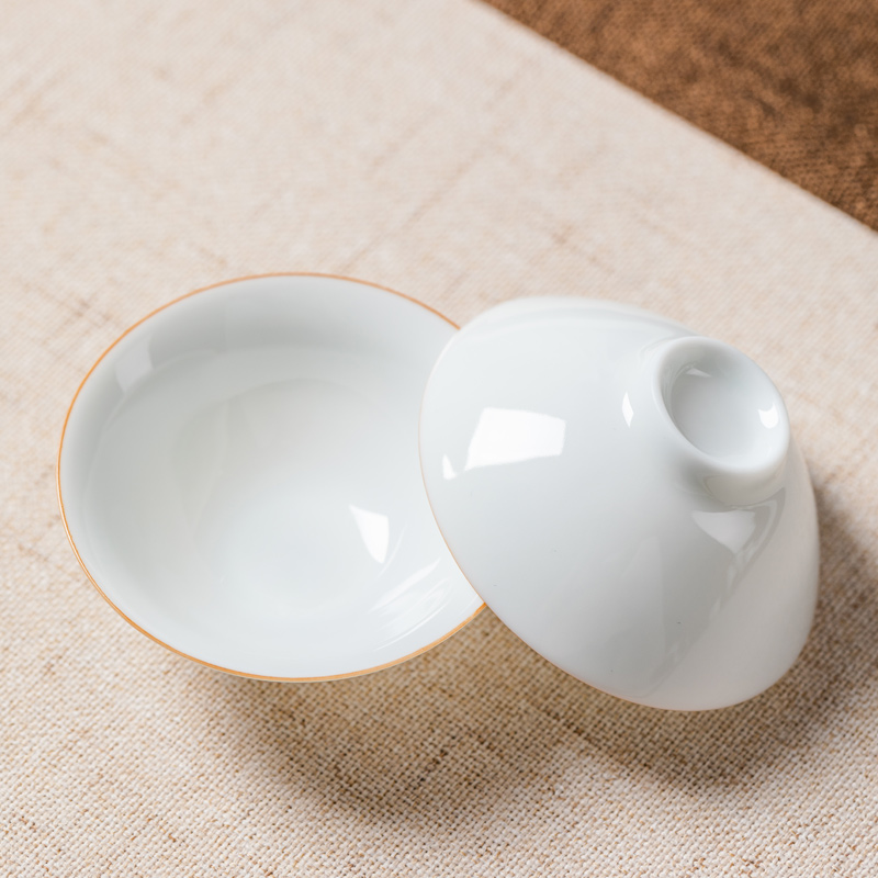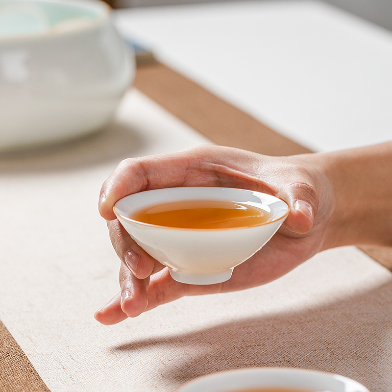 甜白瓷功夫茶杯陶瓷家用斗笠杯小号品茗杯敞口茶具单个喝普洱茶碗