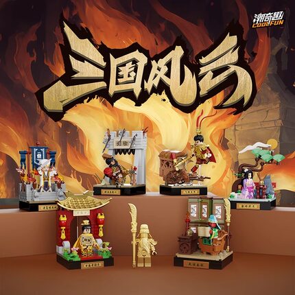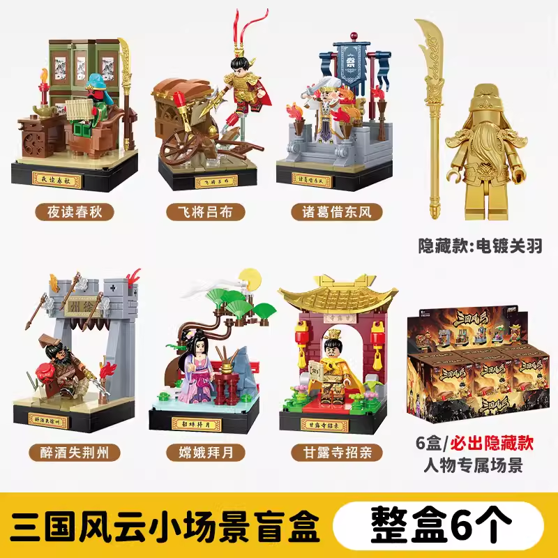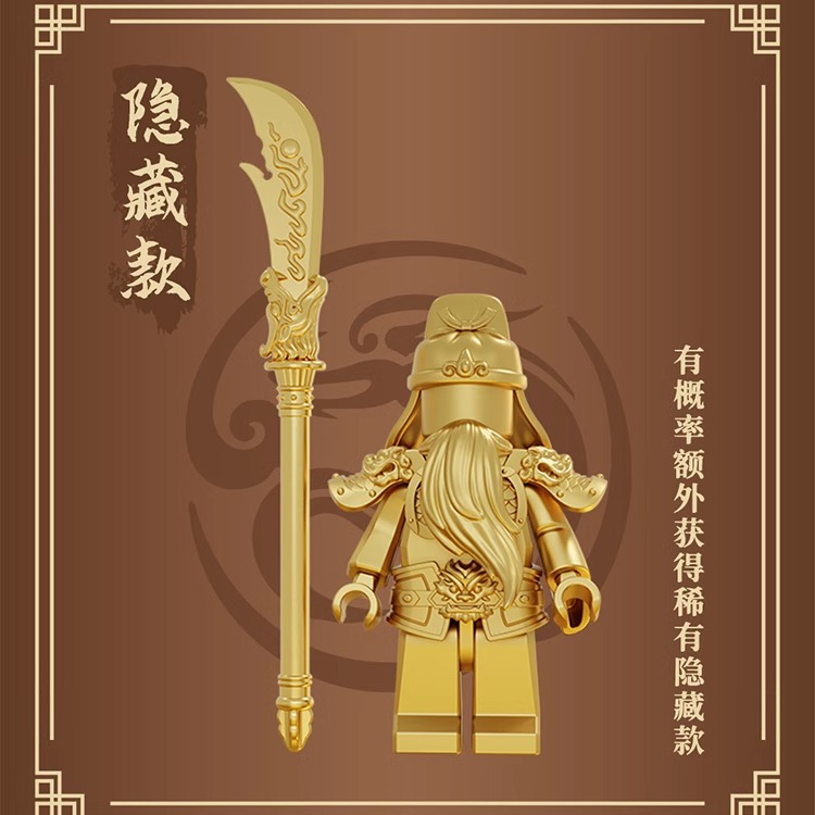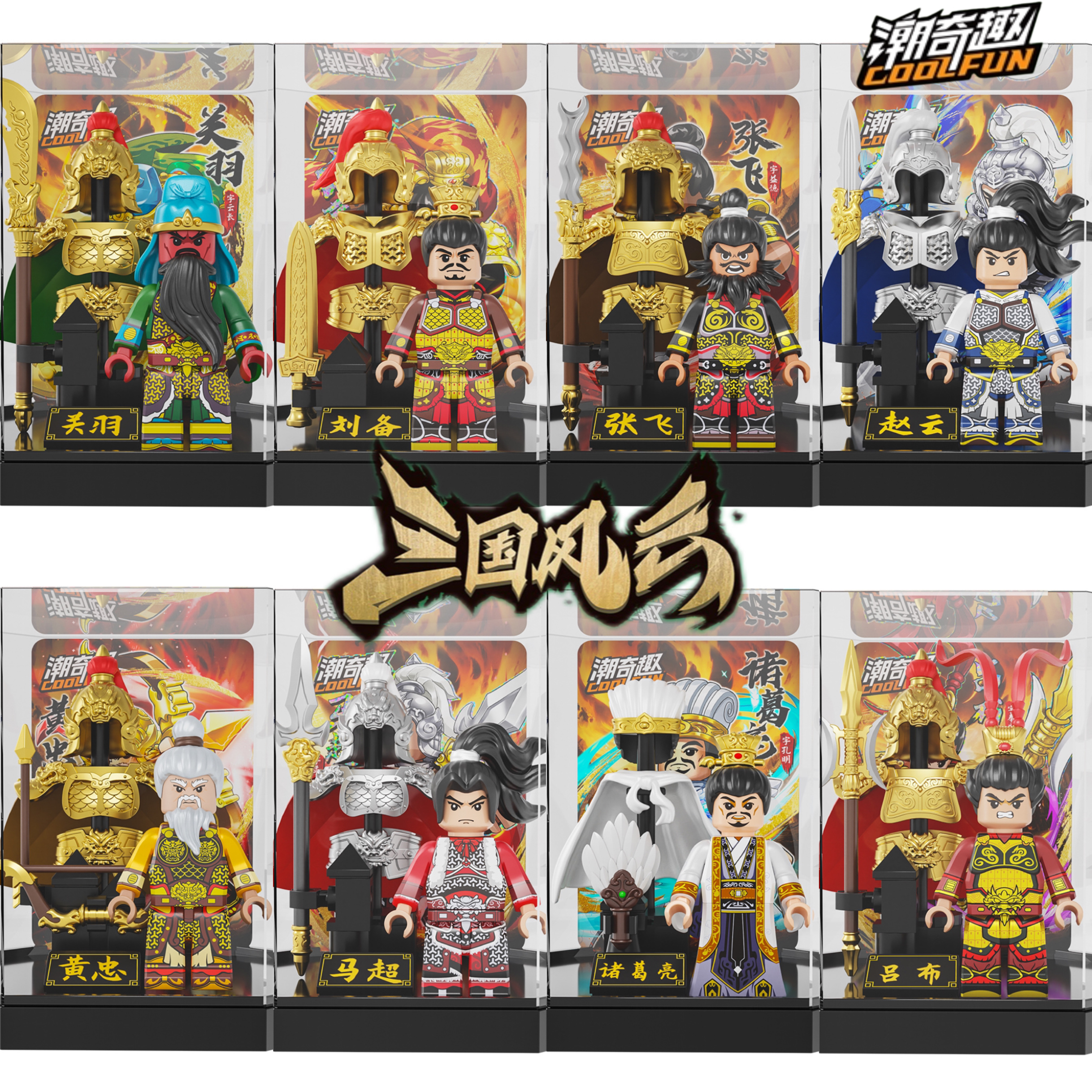 潮奇趣三国风云战甲版刘备关羽马超人仔拼装积木模型潮玩盲盒玩具