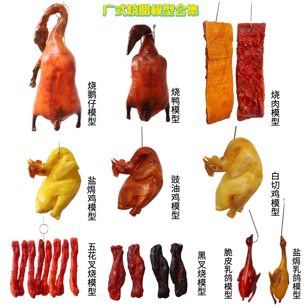 仿真深井烧鹅仔叉烧肉烧鸭烧肉烤乳鸽白斩切鸡豉油鸡广式烧腊模型