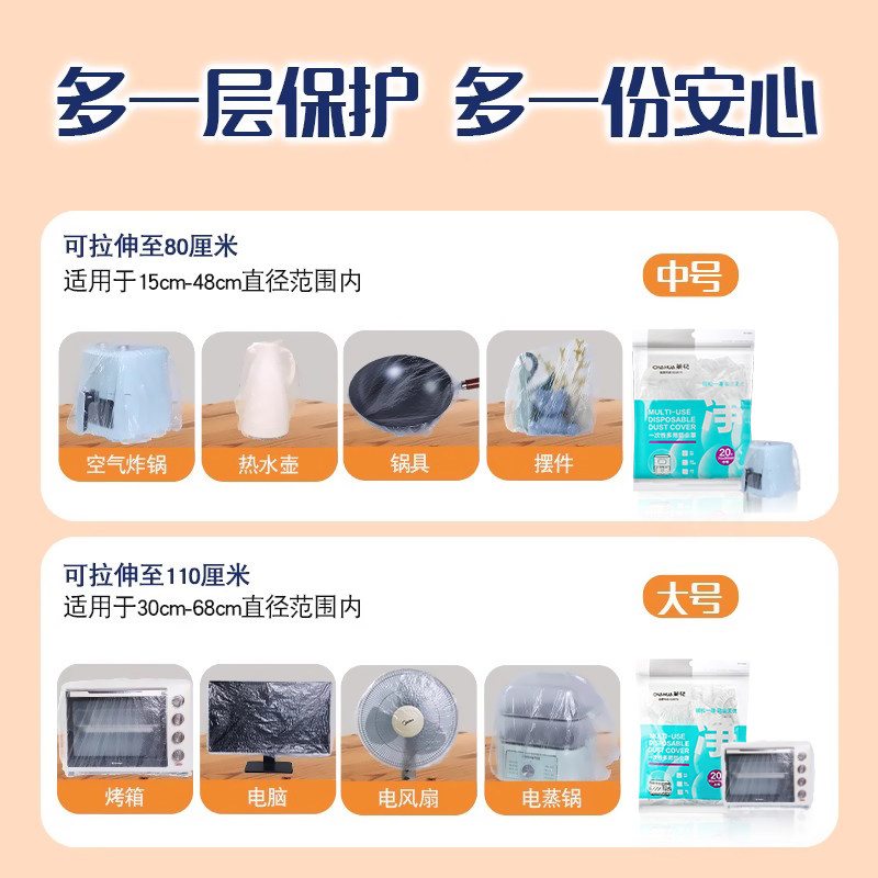 茶花一次性防尘罩加大加厚厨房电器大家电电饭煲微波炉套透明袋PE