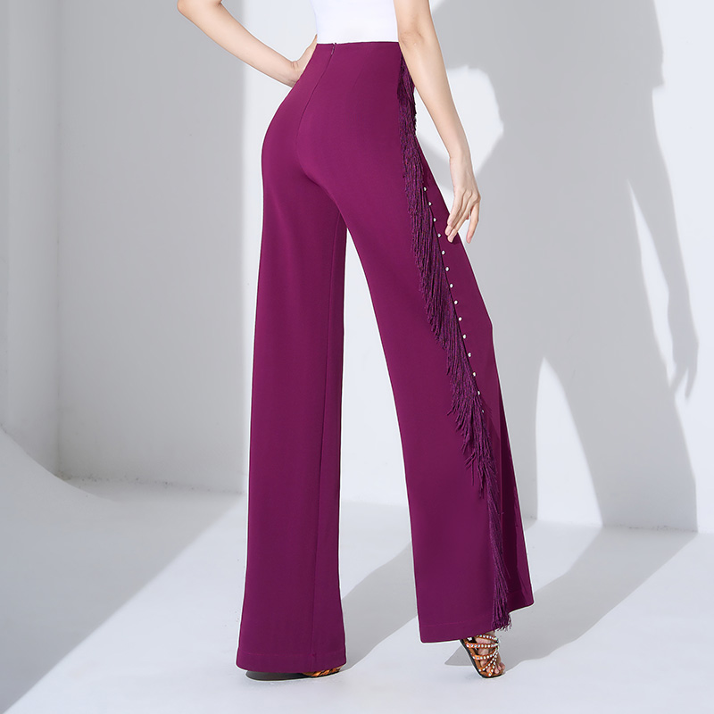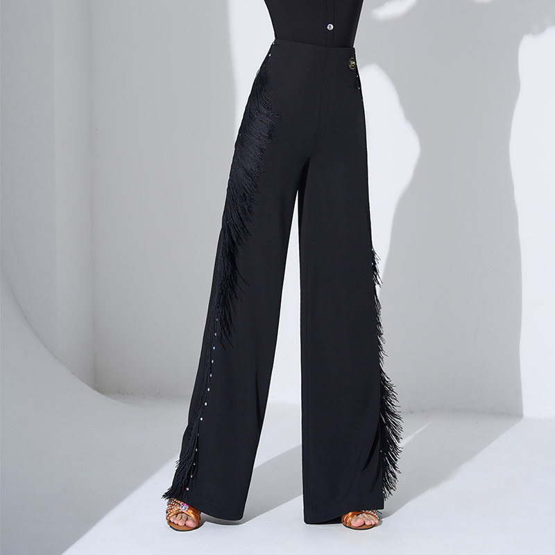 艺尚舞垂坠感舞蹈裤拉丁舞流苏阔腿裤国标舞长筒裤广场喇叭裤1061