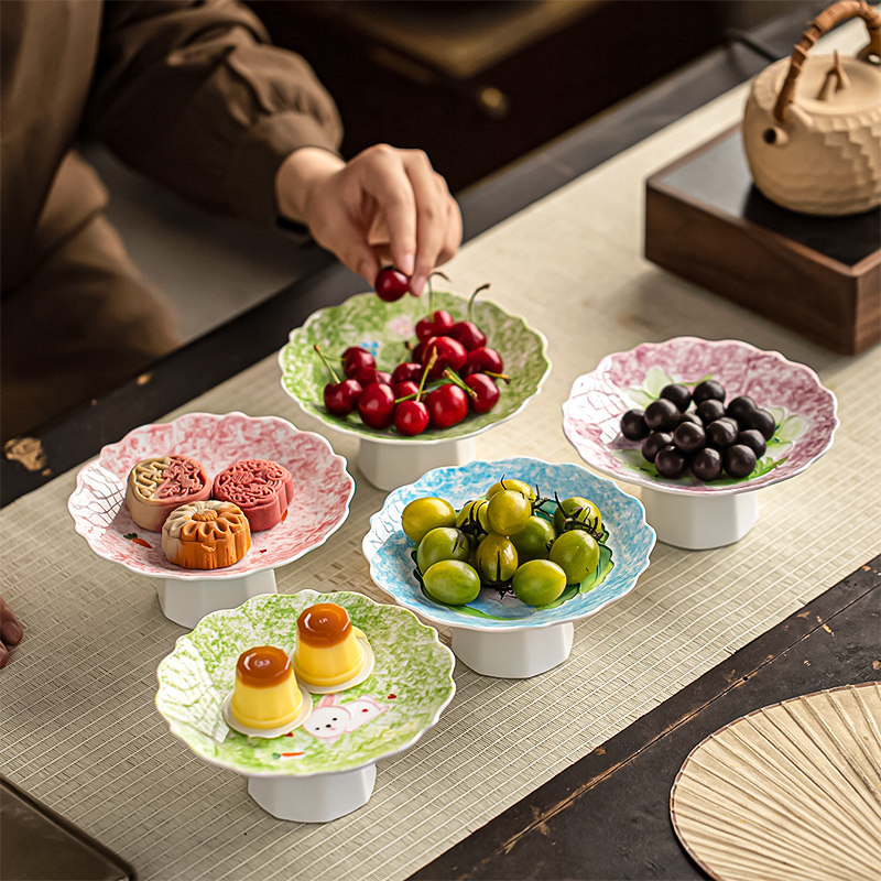 陶煲王陶瓷高脚水果盘家用茶点盘零食干果糖果盘客厅茶几摆台托盘