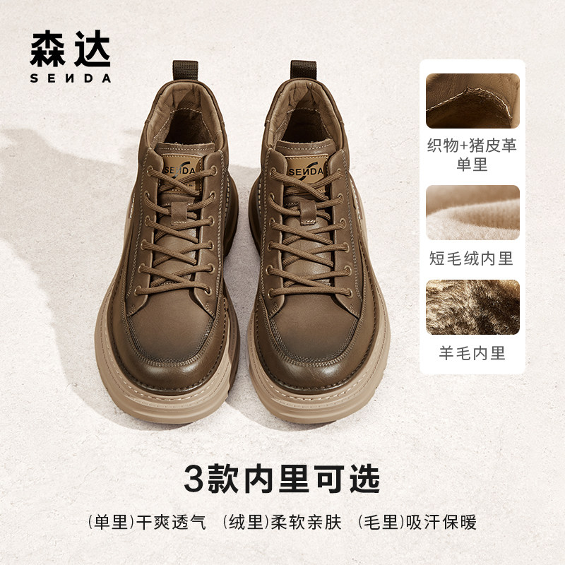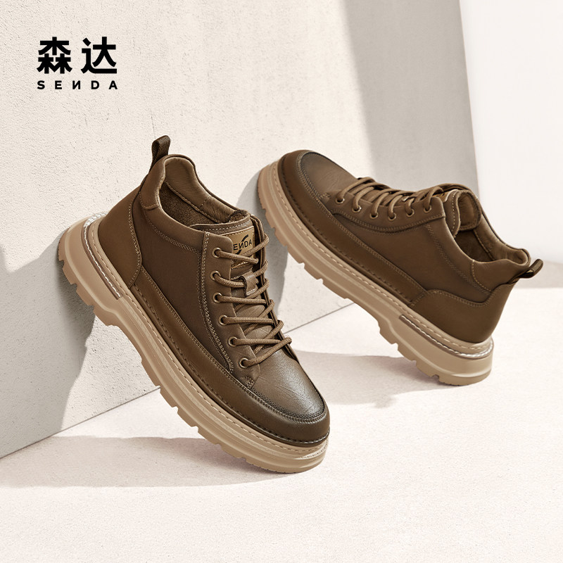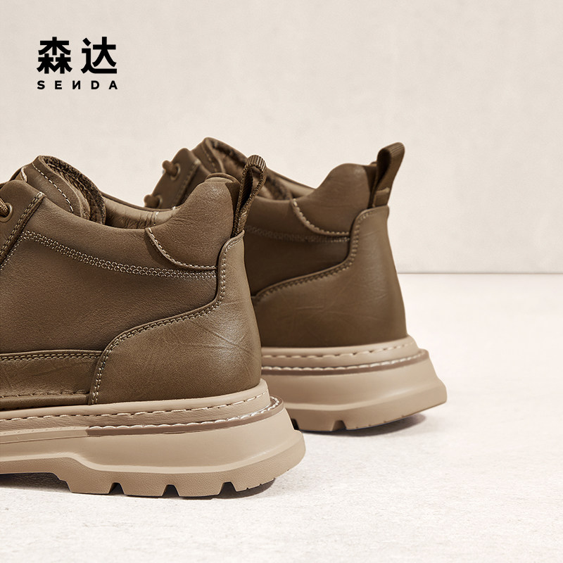 森达男鞋工装靴复古英伦大黄靴商场同款秋冬加绒劳保靴子1SQ01DD4