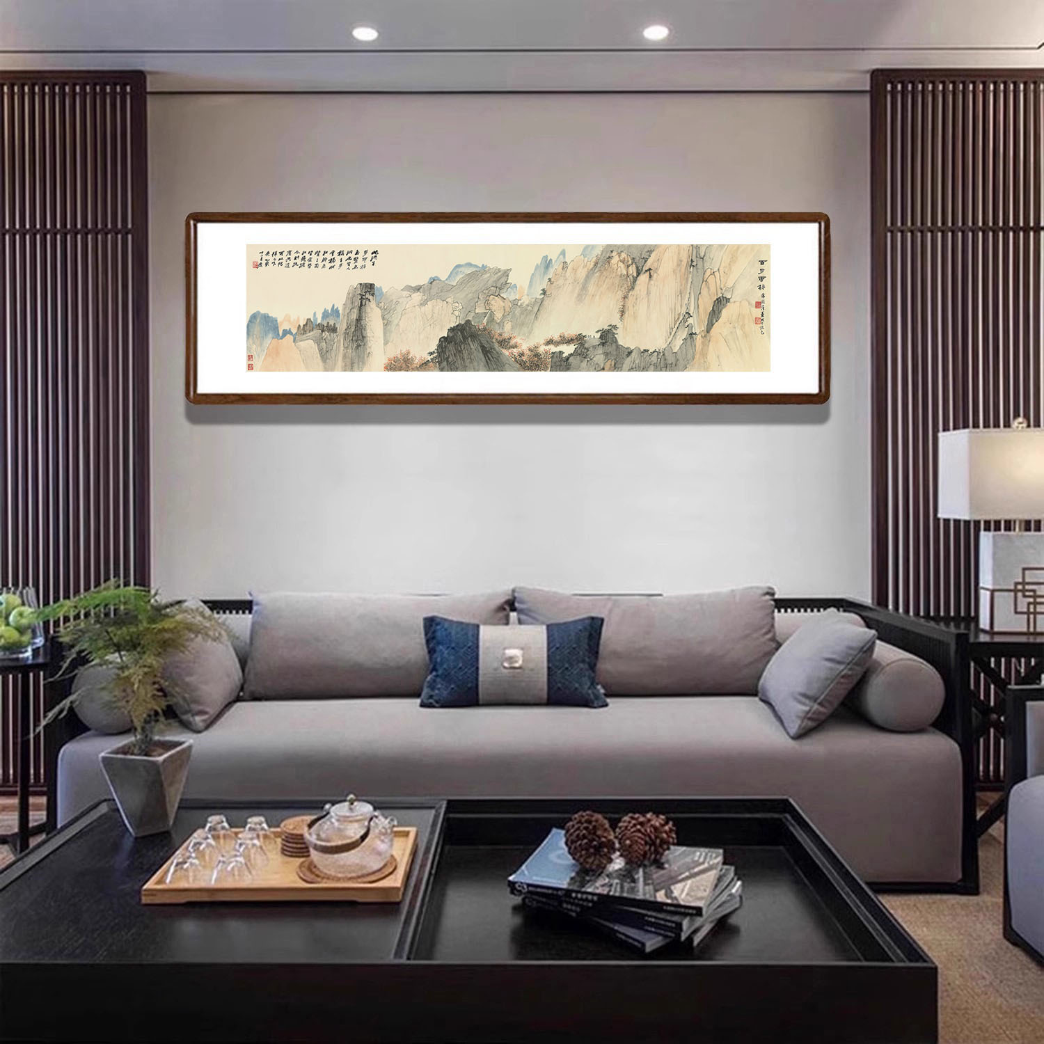 国画山水画新中式客厅背景墙装饰画办公室靠山挂画张大千百步云梯